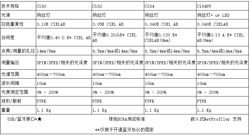 愛色麗Ci6x系列分光測色儀技術參數表