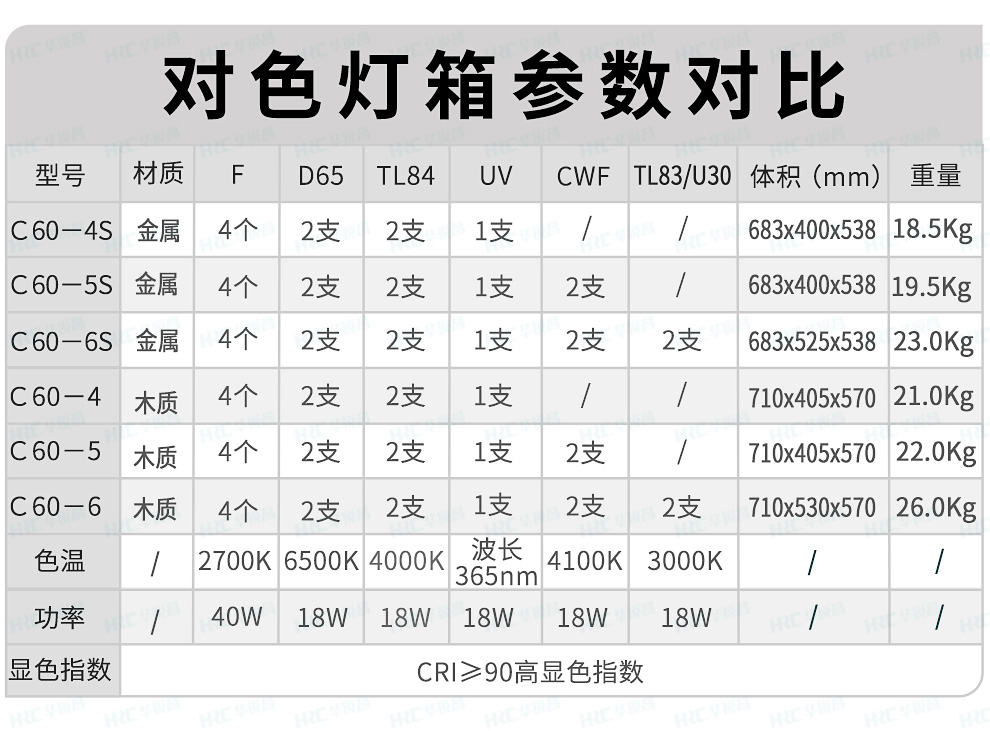 HRC華銳昌對色燈箱參數對比