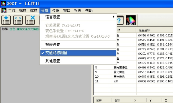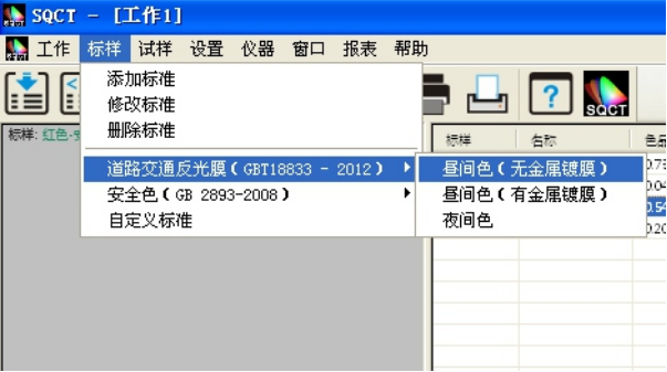針對國內(nèi)交通路標(biāo)使用較多的標(biāo)準(zhǔn)GB/T18833,SQCT軟件將該標(biāo)準(zhǔn)中的標(biāo)準(zhǔn)色域納入其中,客戶只需根據(jù)自己需要進(jìn)行選擇即可。