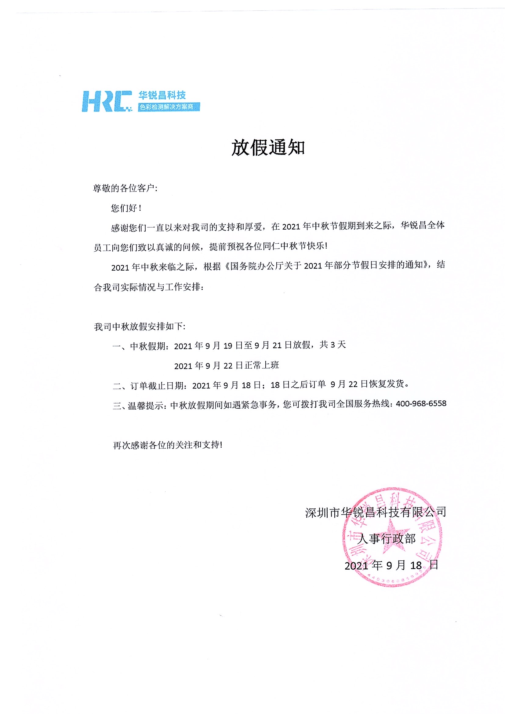 三、溫馨提示:中秋放假期間如遇緊急事務(wù),您可撥打我司全國服務(wù)熱線:400-968-6558